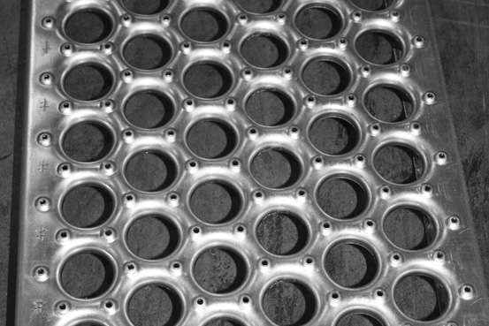 This grating has hundreds of perforated buttons that provide slip resistance. Offering a safe walking surface, it’s great for applications like steel safety flooring, planks, ladder rungs, and slip resistant stair treads. Available in multiple materials and sizes, this is an easily adaptable product.