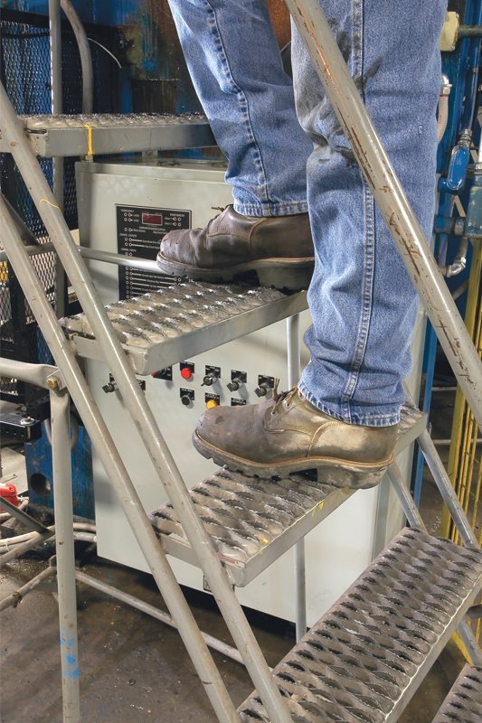 Grip Strut™ stair treads and metal safety grating are used to create metal walkways, steel safety flooring, and slip resistant stair treads. These metal grating planks have a high strength-to-weight performance, which ensures a high load capacity and long life. Our slip resistant stair treads, called Grip Strut™ grating, have serrated surfaces that grip the soles of work boots, reducing on-the-job accidents and can making stairways safer.