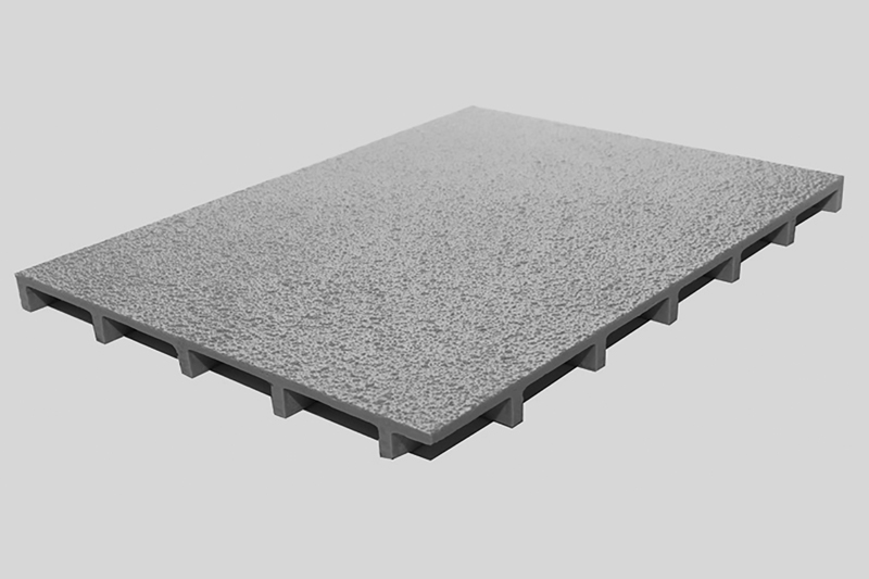 Fiberglass covered grating from Direct Metals® is corrosion resistant, low maintenance, and strong. This long-lasting fiberglass floor product combines a slip-resistant plate and fiberglass grating, manufactured with any of our resin systems. Our fiberglass covered grating is the ideal choice when a 100% covered flooring surface is needed. It is available with a plate which is bonded to molded or pultruded grating.