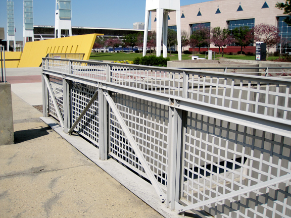 Another architectural metal bar grating application includes steel grates, which are an integral part of the interior of industrial plants, and the exterior landscape all around us. Also known as metal grates, steel grates permit the passage of light, heat, and liquid, and therefore are useful in screening out unwanted elements and debris in various settings. These applications are typically fit with steel grates:
